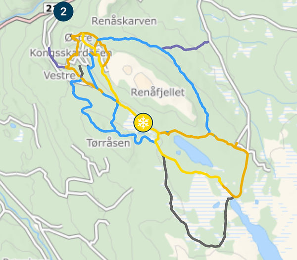 Sist preparert i går morges. Se oppdatert status i Skiappen og følg oss på Facebook og Instagram. Gult løypenett ble kjørt opp i går.